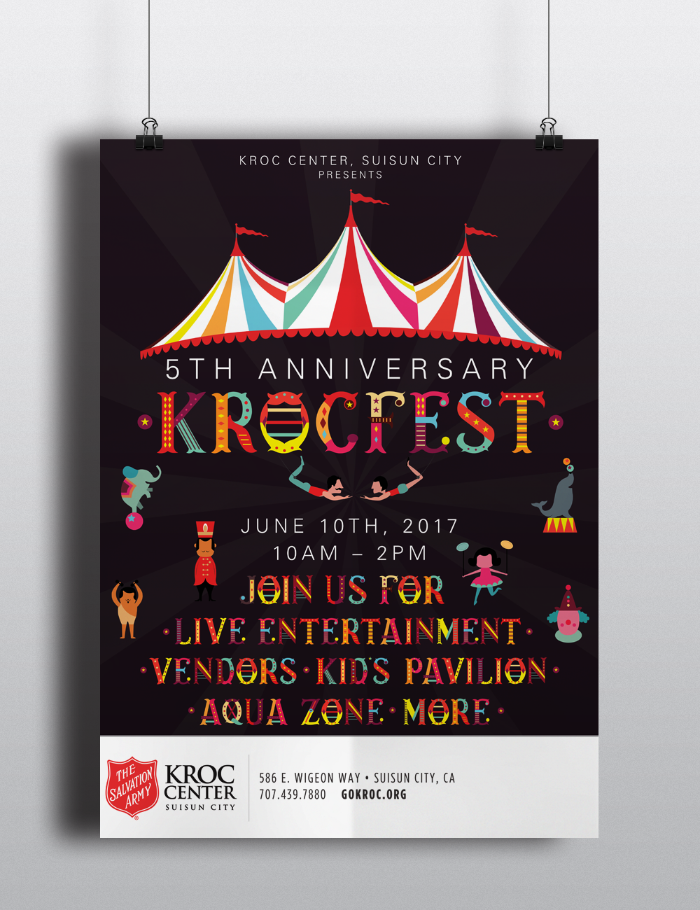 The KrocFest is an annual event held by The Salvation Army Joan & Ray Kroc Center. It offers performances, games, vendors, activities, and prizes. It's a way for the community to come out and become one for a day. The 5th Anniversary, was based on a cirus theme, The Kroc Under the Big Top.
